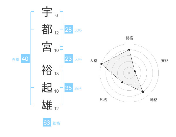 宇都宮 裕起雄さんを姓名の画数から五運を鑑定