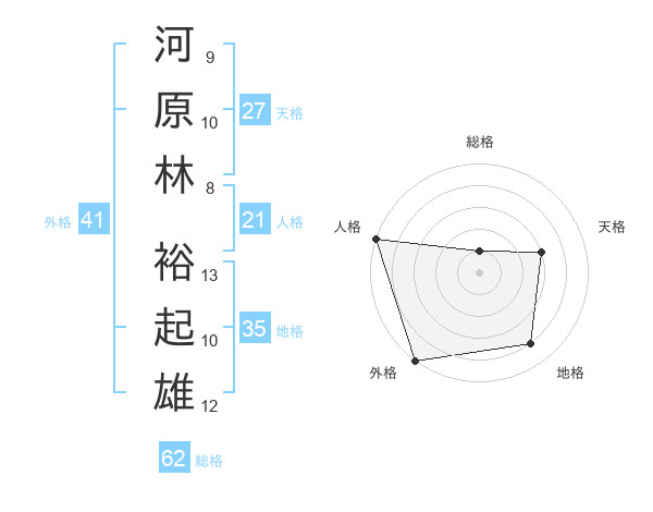 河原林 裕起雄さんを姓名の画数から五運を鑑定