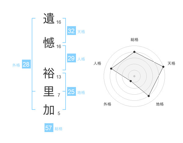 遺憾 裕里加さんを姓名の画数から五運を鑑定