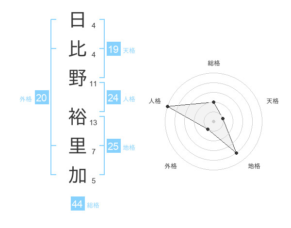 日比野 裕里加さんを姓名の画数から五運を鑑定