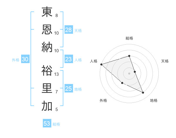 東恩納 裕里加さんを姓名の画数から五運を鑑定