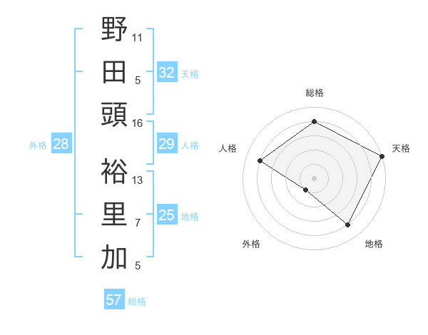 野田頭 裕里加さんを姓名の画数から五運を鑑定