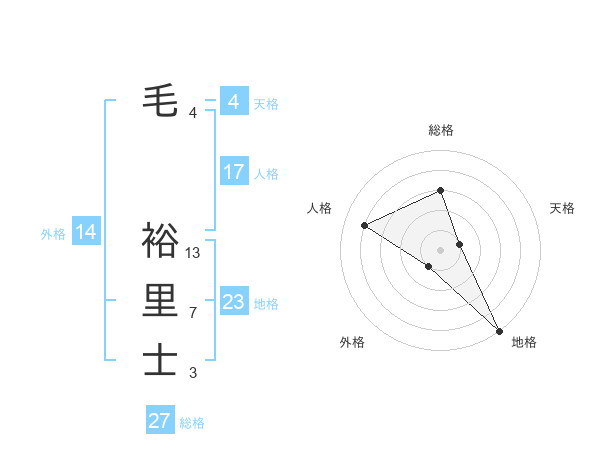 毛 裕里士さんを姓名の画数から五運を鑑定