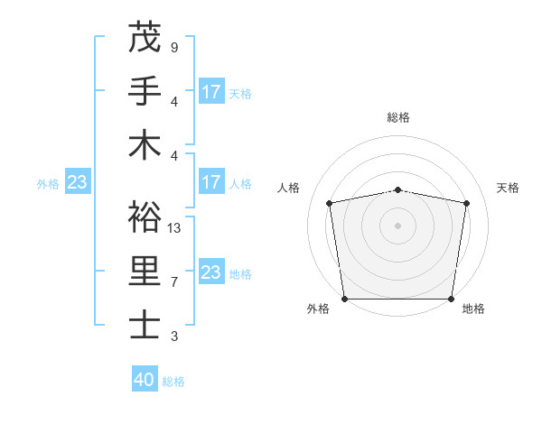 茂手木 裕里士さんを姓名の画数から五運を鑑定