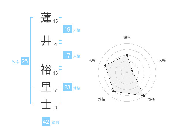 蓮井 裕里士さんの総格は42画の3点!