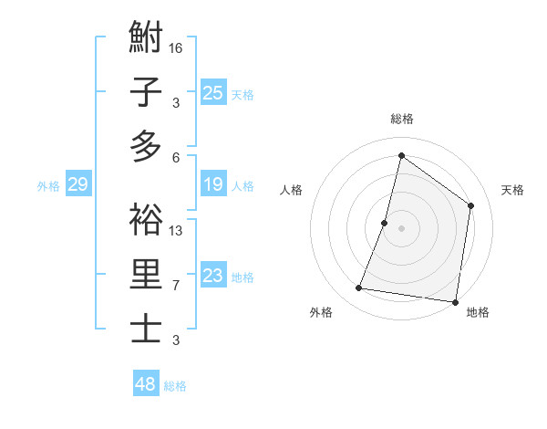 鮒子多 裕里士さんを姓名の画数から五運を鑑定