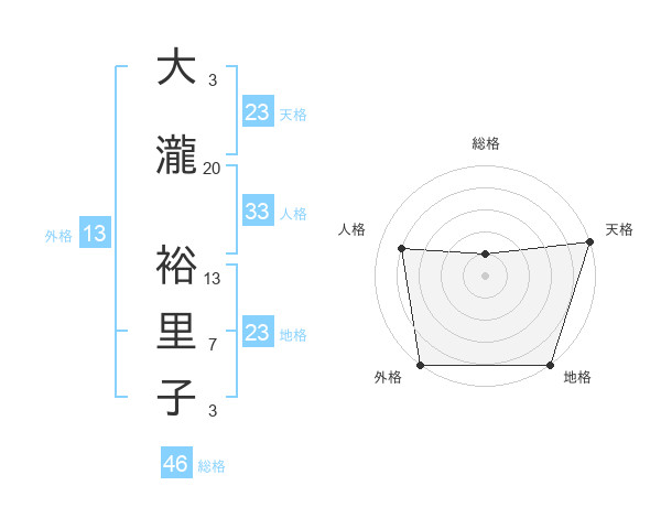 大瀧 裕里子さんを姓名の画数から五運を鑑定
