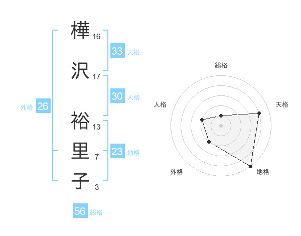 樺沢 裕里子さんを姓名の画数から五運を鑑定