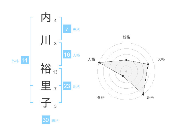 内川 裕里子さんを姓名の画数から五運を鑑定
