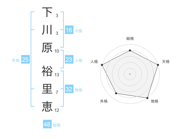 下川原 裕里恵さんを姓名の画数から五運を鑑定