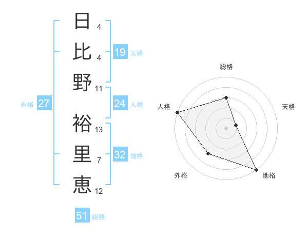 日比野 裕里恵さんを姓名の画数から五運を鑑定