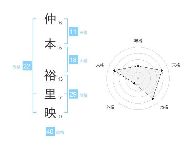 仲本 裕里映さんを姓名の画数から五運を鑑定