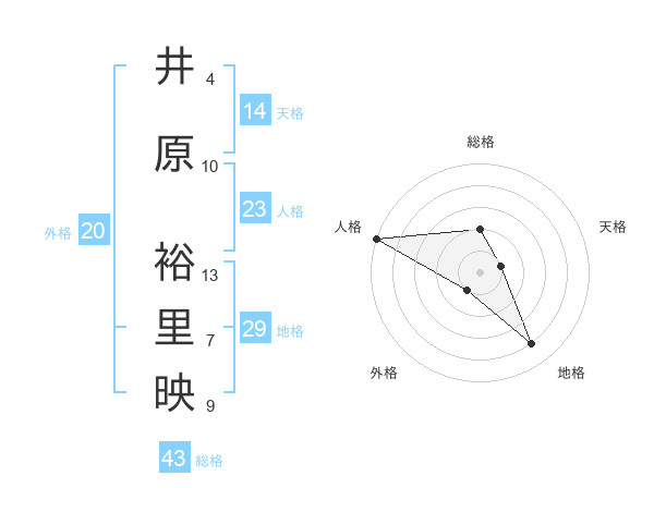 井原 裕里映さんを姓名の画数から五運を鑑定