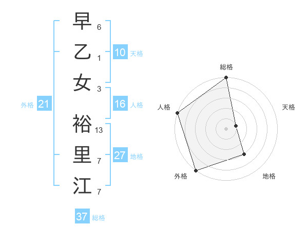 早乙女 裕里江さんを姓名の画数から五運を鑑定