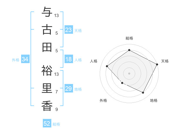 与古田 裕里香さんを姓名の画数から五運を鑑定