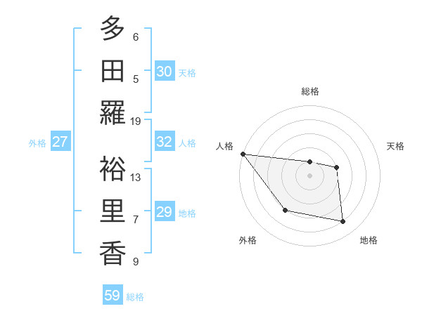 多田羅 裕里香さんを姓名の画数から五運を鑑定
