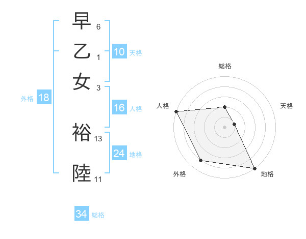 早乙女 裕陸さんを姓名の画数から五運を鑑定