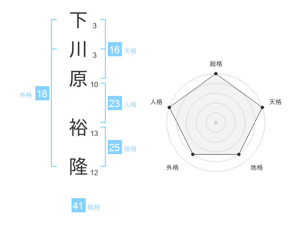 下川原 裕隆さんを姓名の画数から五運を鑑定