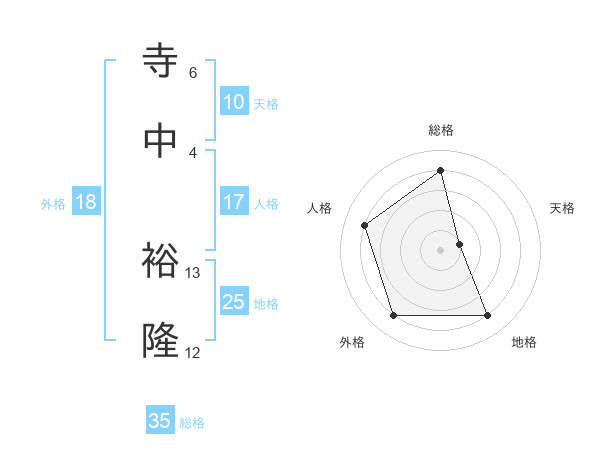 寺中 裕隆さんを姓名の画数から五運を鑑定