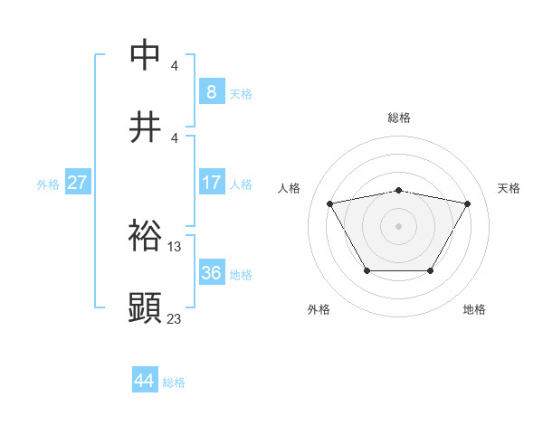 中井 裕顕さんを姓名の画数から五運を鑑定