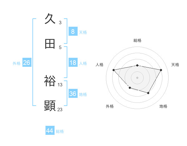 久田 裕顕さんの総格は44画の2点!