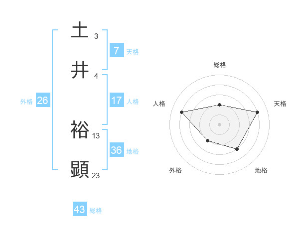 土井 裕顕さんを姓名の画数から五運を鑑定