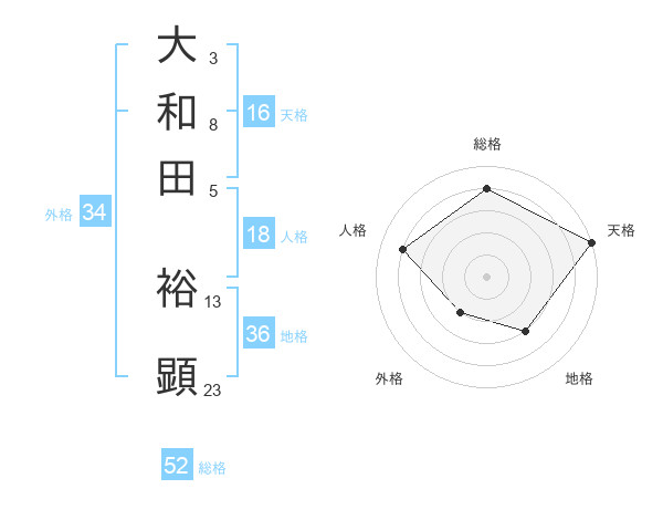 大和田 裕顕さんの天格は16画の5点!