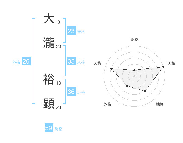 大瀧 裕顕さんの天格は23画の5点!