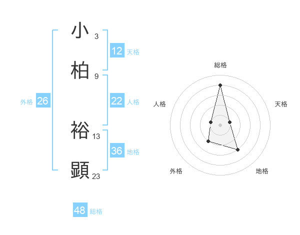 小柏 裕顕さんの天格は12画の1点!