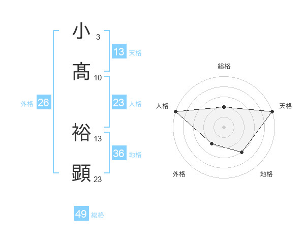 小髙 裕顕さんの総格は49画の2点!