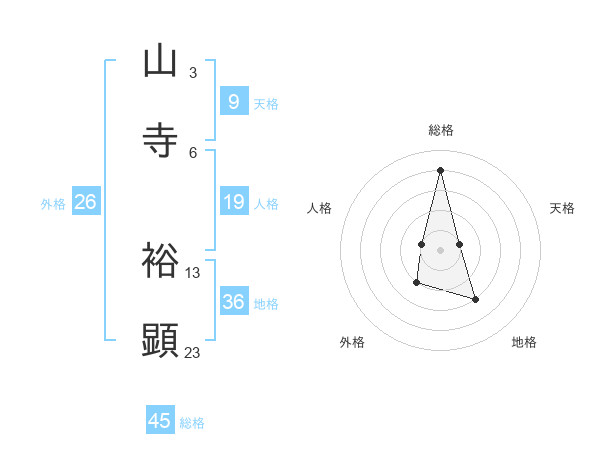 山寺 裕顕さんの総格は45画の4点!