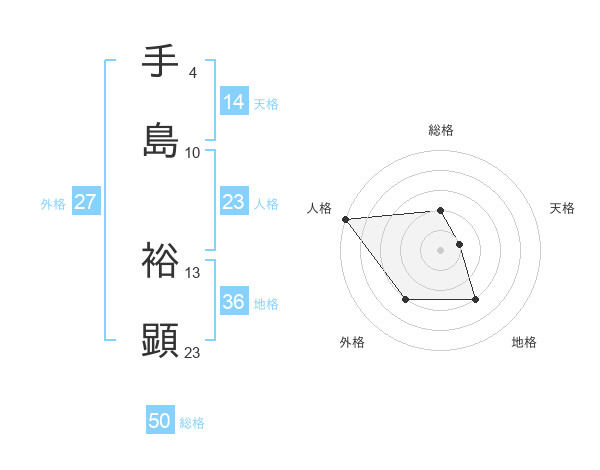 手島 裕顕さんの総格は50画の2点!