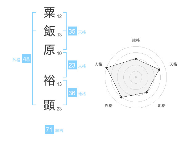粟飯原 裕顕さんの総格は71画の3点!