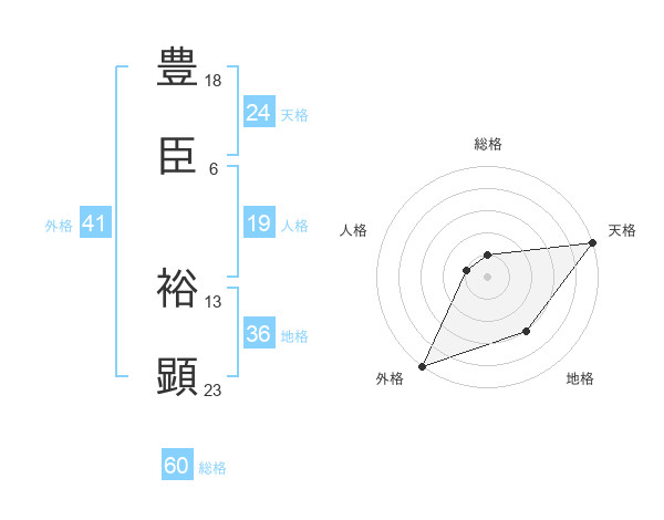 豊臣 裕顕さんを姓名の画数から五運を鑑定