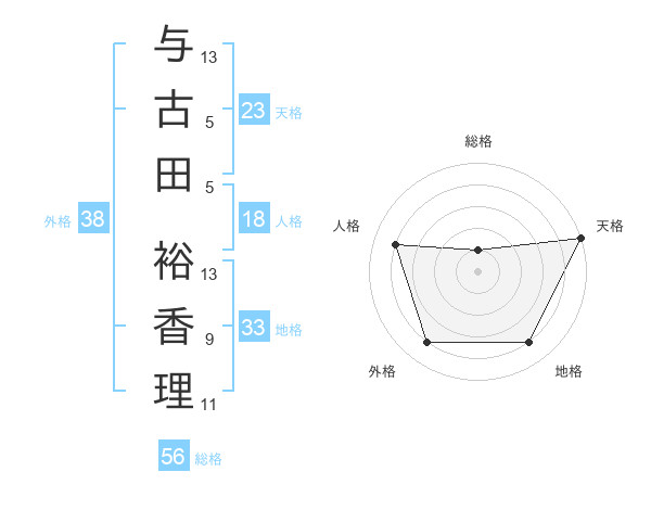 与古田 裕香理さんを姓名の画数から五運を鑑定