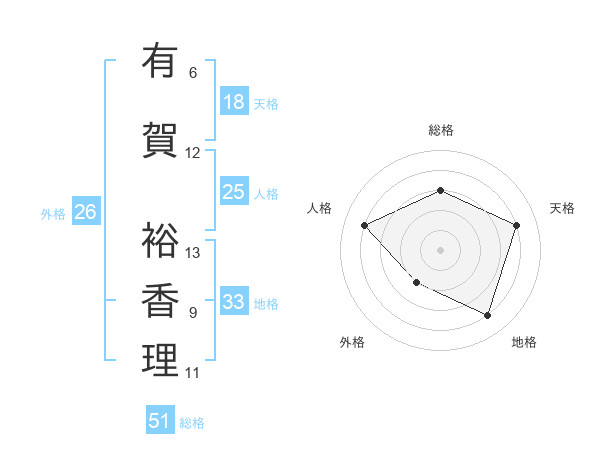 有賀 裕香理さんの総格は51画の3点!