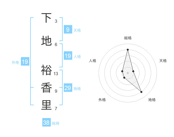 下地 裕香里さんの総格は38画の4点!