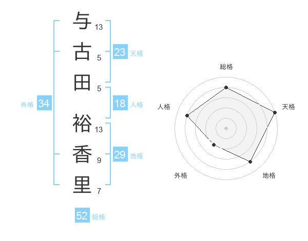 与古田 裕香里さんを姓名の画数から五運を鑑定