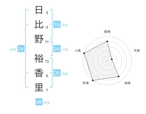 日比野 裕香里さんを姓名の画数から五運を鑑定