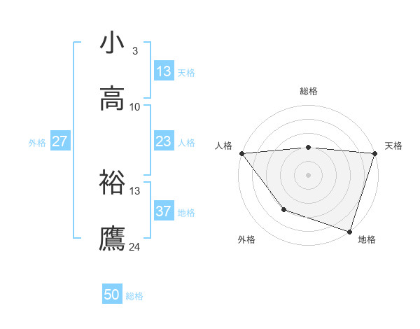 小高 裕鷹さんを姓名の画数から五運を鑑定