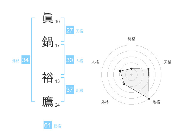 眞鍋 裕鷹さんの地格は37画の5点!