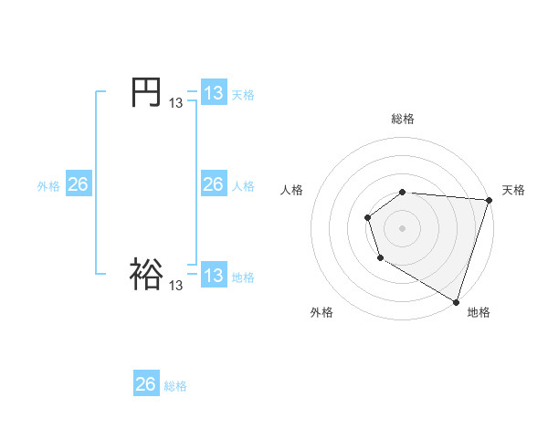 円 裕さんの天格は13画の5点!