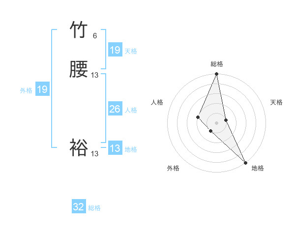 竹腰 裕さんの総格は32画の5点!