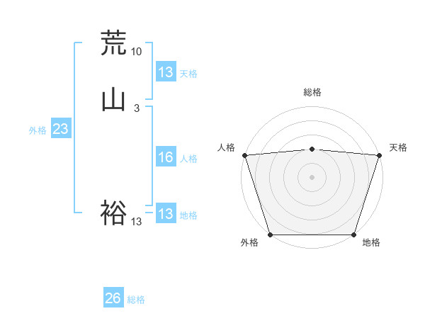 荒山 裕さんの天格は13画の5点!
