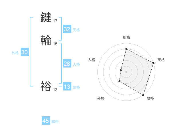 鍵輪 裕さんの総格は45画の4点!