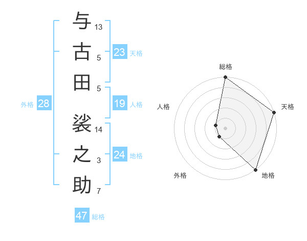 与古田 裟之助さんを姓名の画数から五運を鑑定