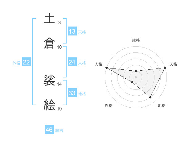 土倉 裟絵さんの天格は13画の5点!