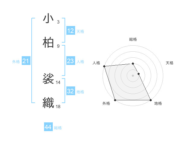 小柏 裟織さんを姓名の画数から五運を鑑定