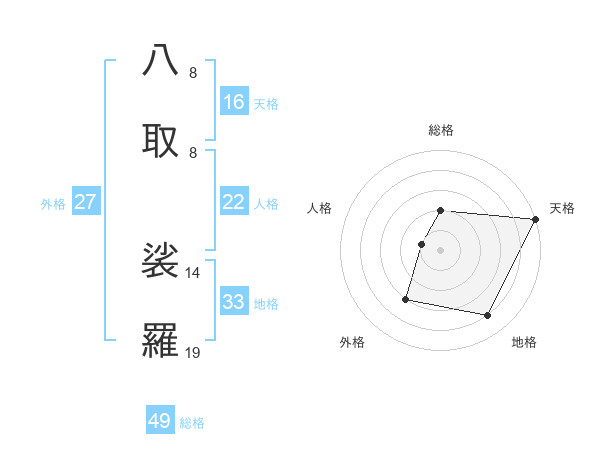 八取 裟羅さんを姓名の画数から五運を鑑定