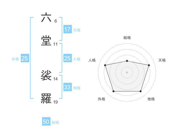 六堂 裟羅さんの外格は25画の4点!